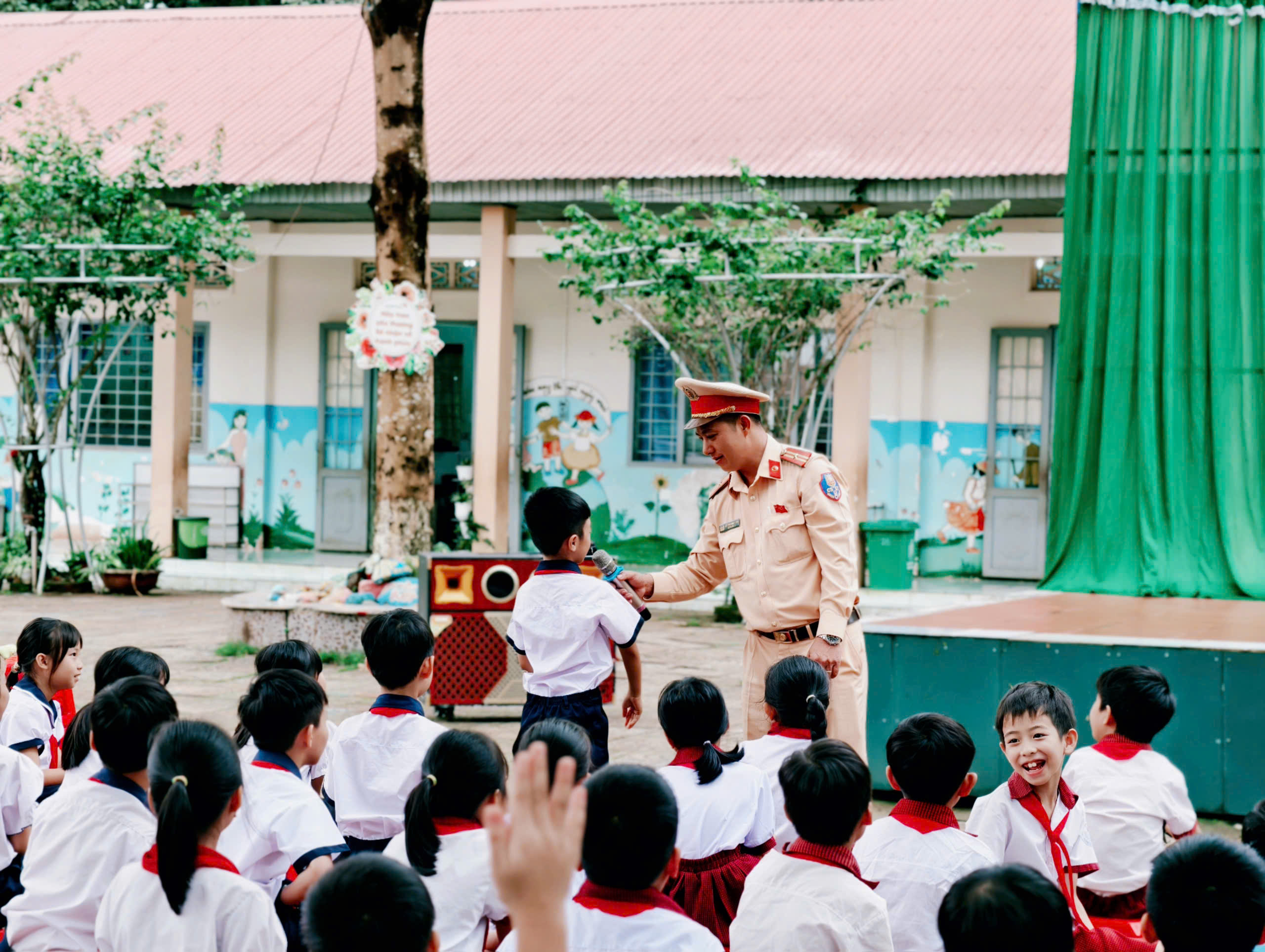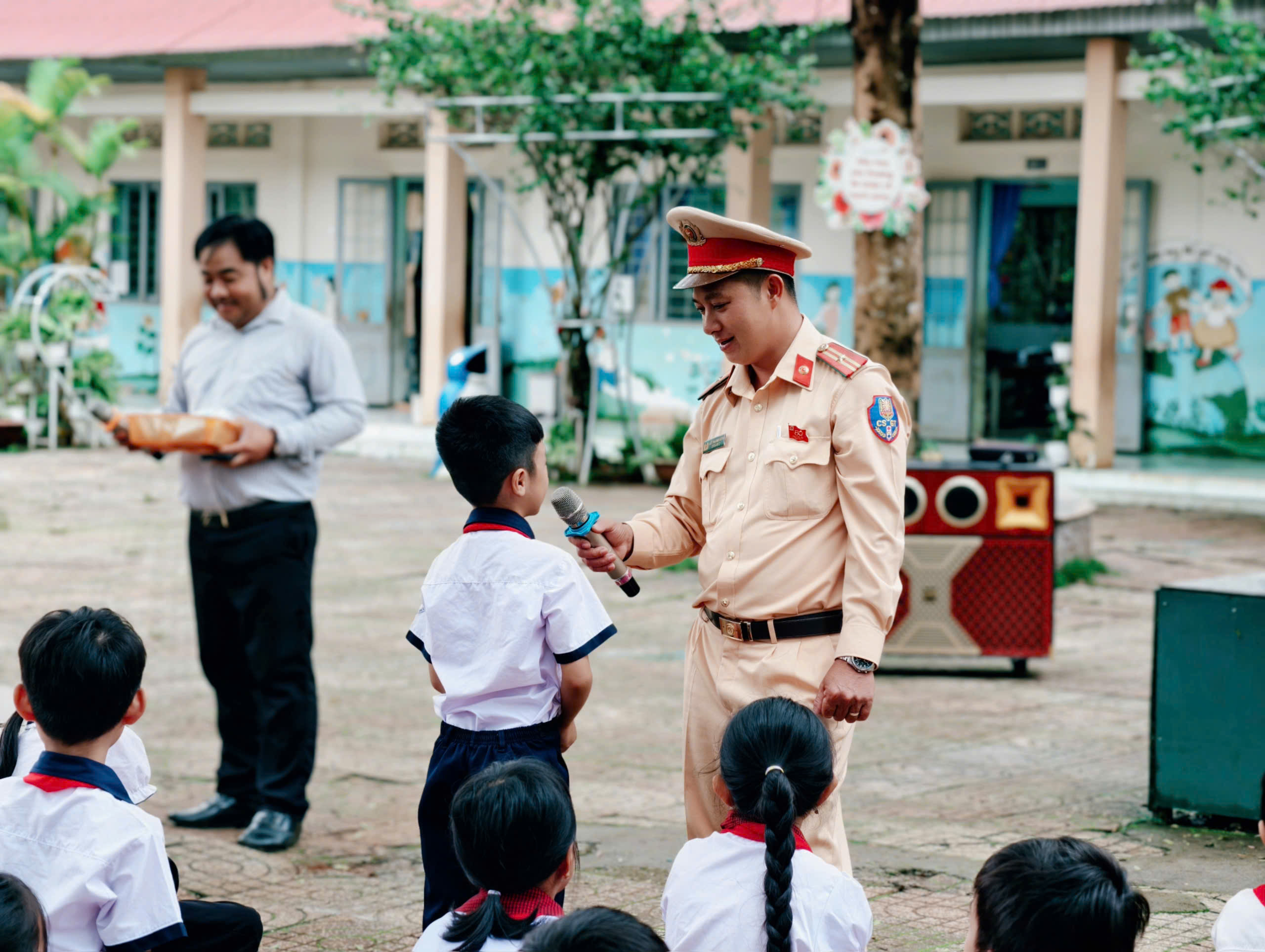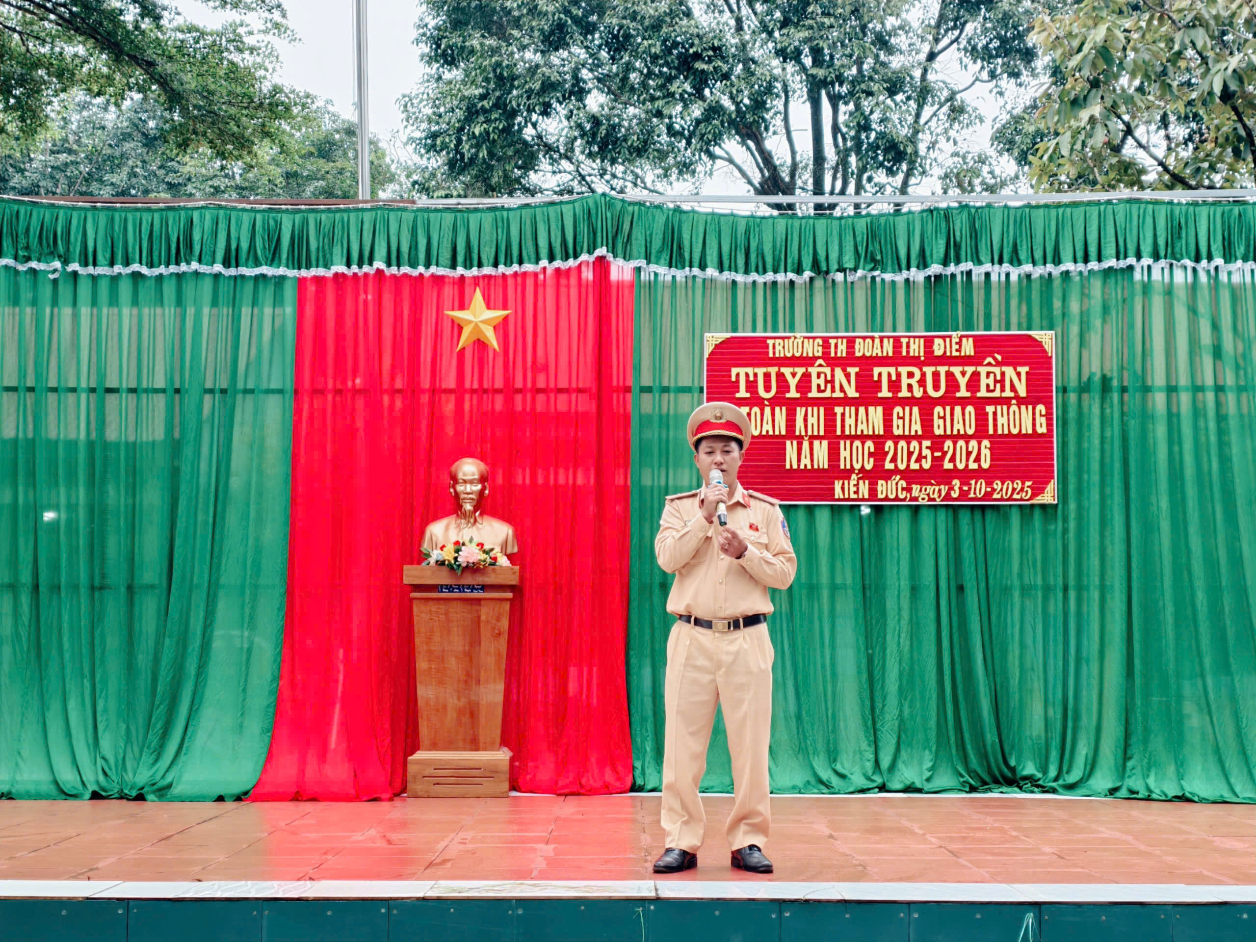 Thực hiện kế hoạch năm học 2025-2026, Hôm nay, ngày 3 tháng 10 năm 2025, trường tiểu học Đoàn Thị Điểm phối hợp với Đội Cảnh sát giao thông đường bộ số 5 – Công an tỉnh Lâm Đồng (Tổ CSGT Kiến Đức) đã tổ chức buổi tuyên truyền về an toàn khi tham gia giao thông cho các em học sinh.