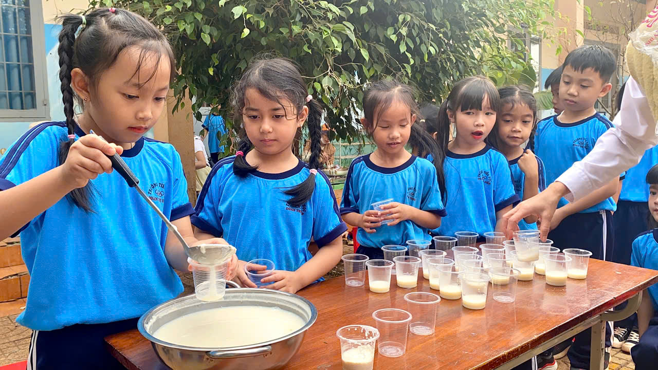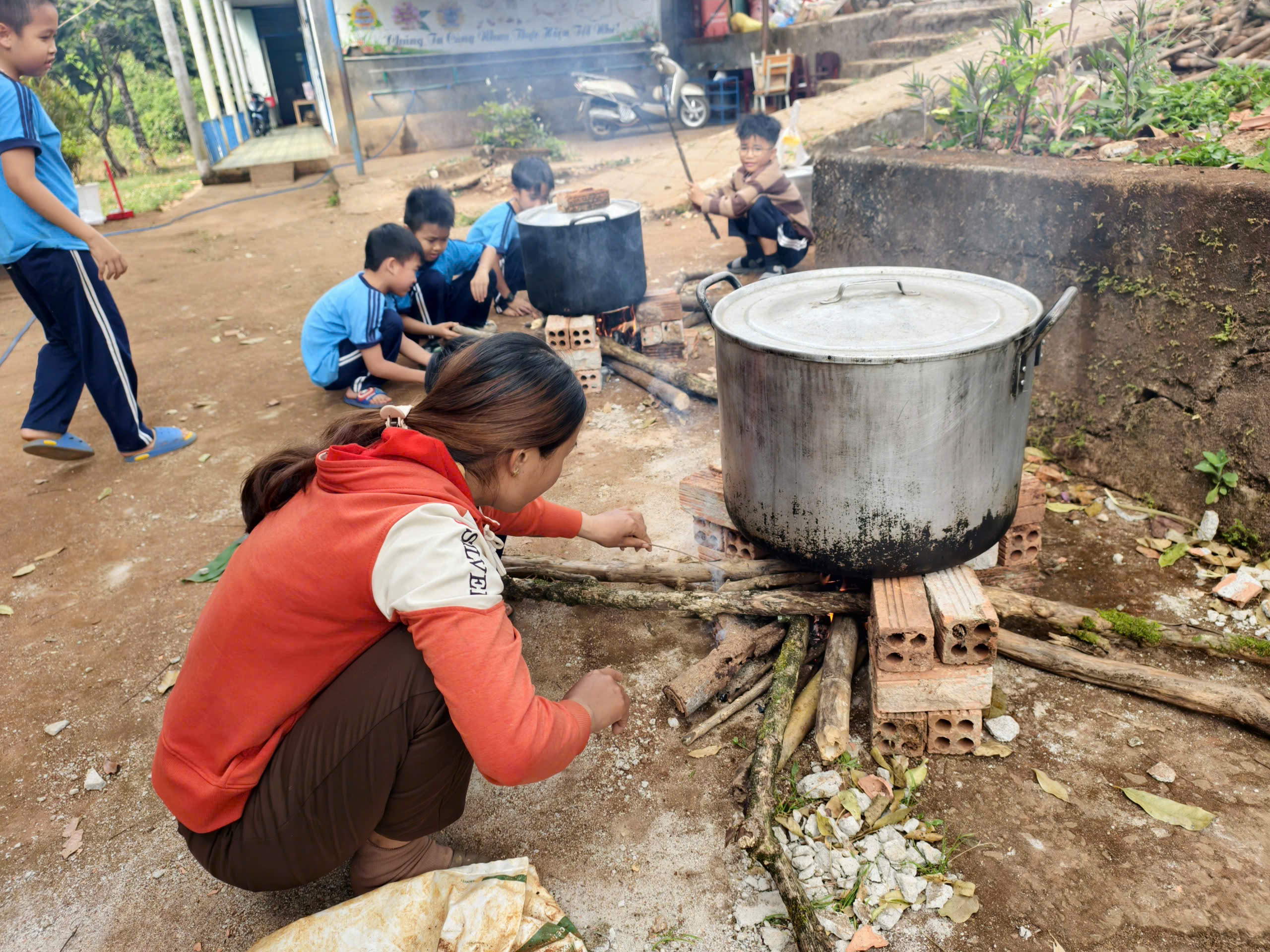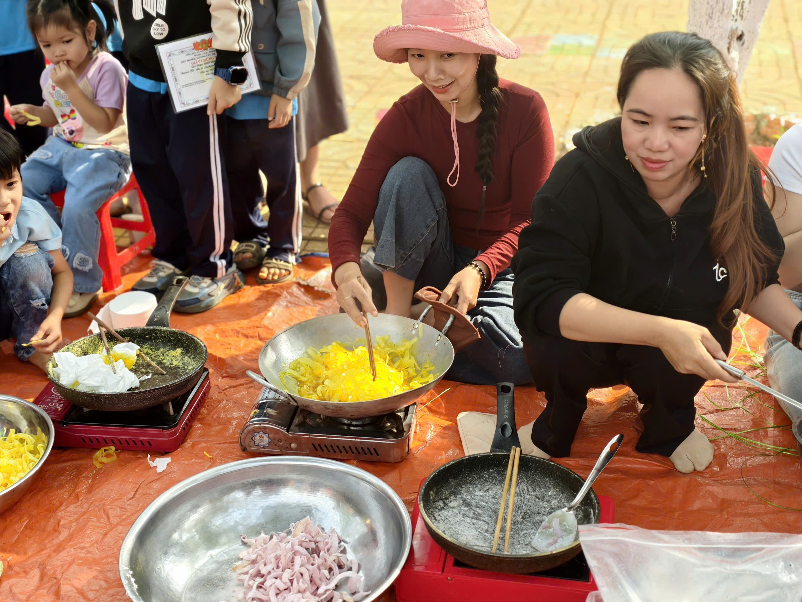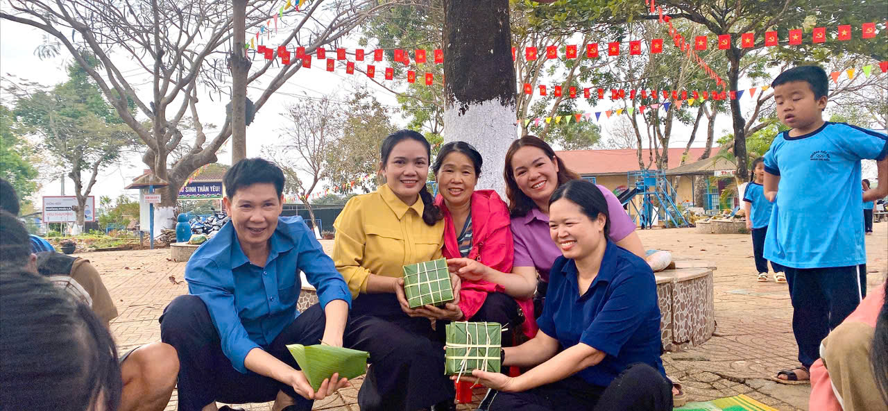 Tiếp nối chương trình là hoạt động trải nghiệm gói bánh chưng, bánh tét và làm mứt Tết. Dưới sự hướng dẫn của thầy cô giáo và các anh chị tình nguyện viên, các em học sinh được trực tiếp tham gia các công đoạn làm bánh, tìm hiểu ý nghĩa của bánh chưng, bánh tét trong ngày Tết cổ truyền. Hoạt động không chỉ giúp các em hiểu thêm về nét đẹp văn hóa dân tộc mà còn tạo không khí vui tươi, gắn kết, để lại nhiều kỷ niệm đáng nhớ trong những ngày xuân.