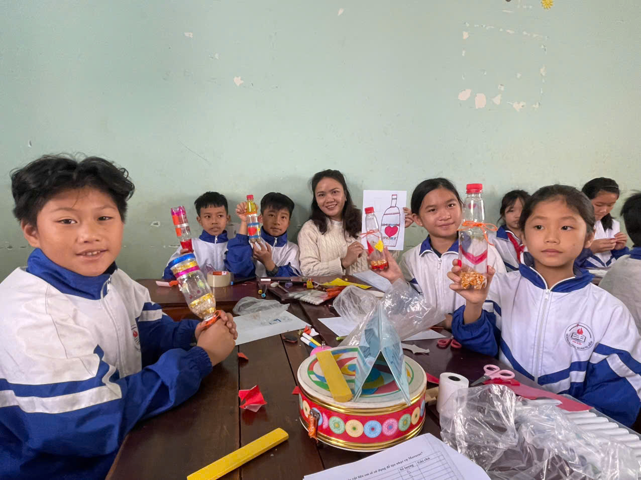 Qua đó, học sinh không chỉ được học âm nhạc một cách trực quan, sinh động mà còn phát huy khả năng tư duy sáng tạo, kỹ năng làm việc nhóm, ý thức bảo vệ môi trường và tinh thần tiết kiệm thông qua việc tái sử dụng vật liệu.