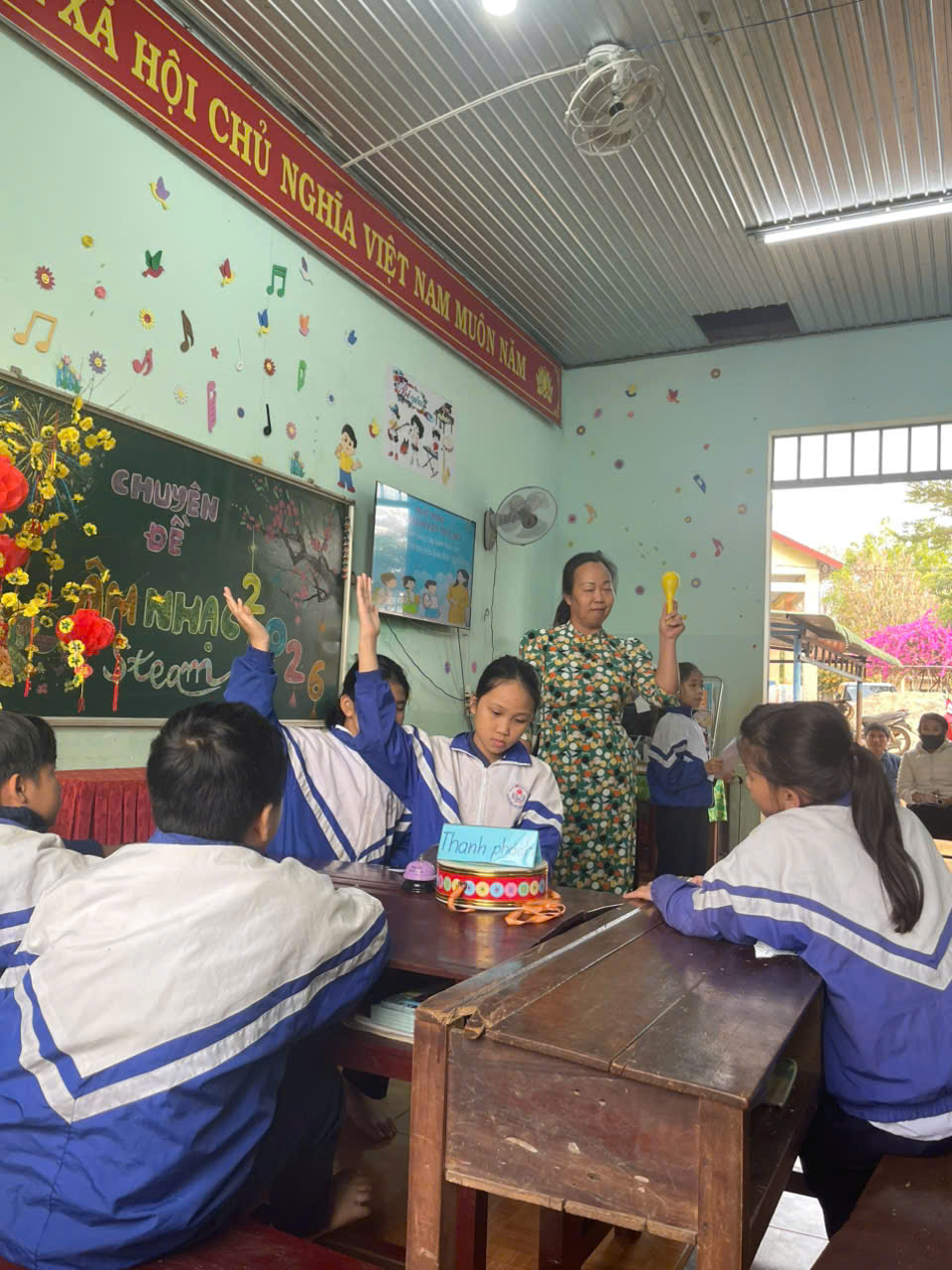 Chuyên đề được tổ chức trong không khí sôi nổi, sáng tạo và nhận được sự quan tâm của Ban giám hiệu nhà trường cùng đông đảo giáo viên tham dự. Thông qua hoạt động trải nghiệm thực hành, học sinh được hướng dẫn cách tận dụng những vật liệu quen thuộc, dễ tìm như chai nhựa, lon nhôm, hạt khô, giấy màu… để thiết kế và chế tạo nhạc cụ Maracas – một loại nhạc cụ gõ phổ biến trong âm nhạc.